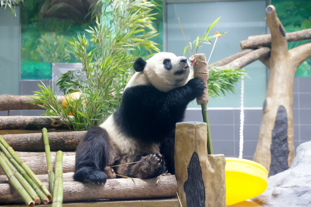 温州动物园相关工作人员介绍,为了给“宝弟”“宝妹”提供舒适的生活环境,场馆内配备了空调新风系统,当室外温度高于25摄氏度时,系统会自动开启,确保馆内凉爽舒适。在饮食方面,大熊猫日常食用竹以箭竹、苦竹、楠竹等为主,同时搭配了胡萝卜、苹果、窝窝头等食物,全力让兄妹俩吃得开心、吃得健康。