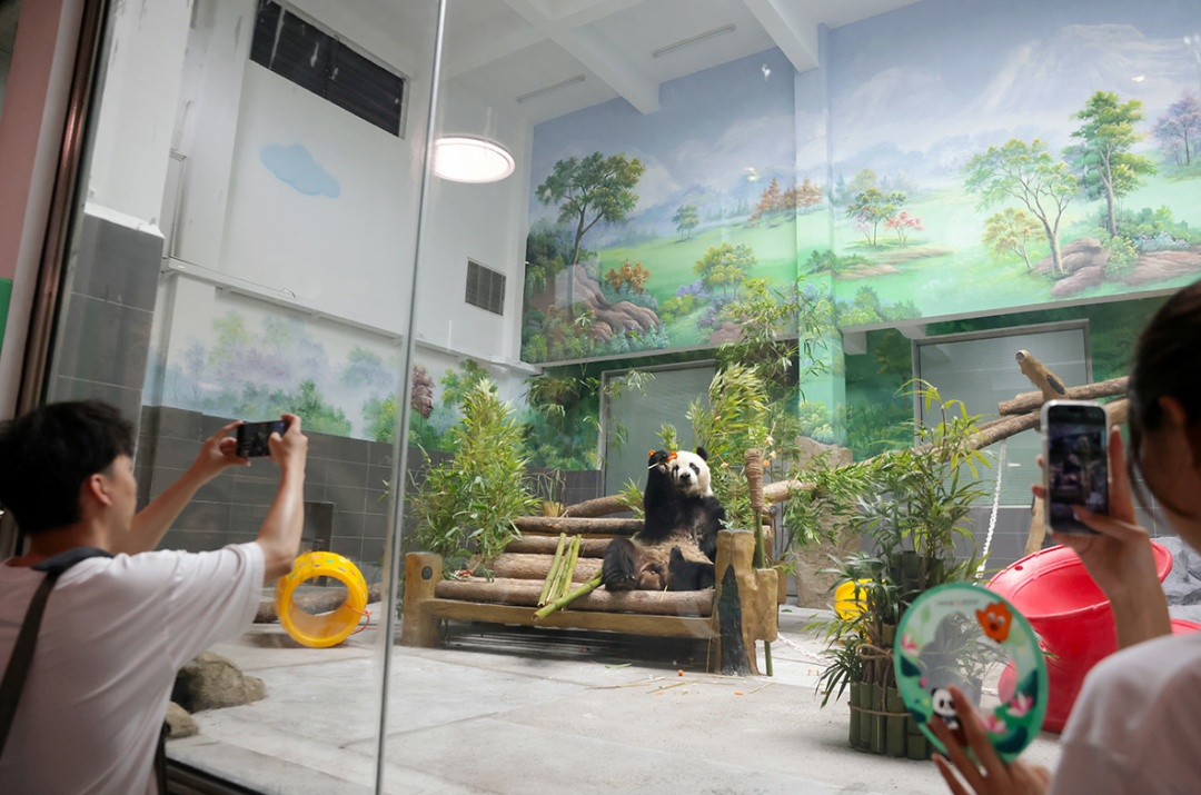 在熊猫馆内,记者看到了“宝弟”“宝妹”憨态可掬的样子。